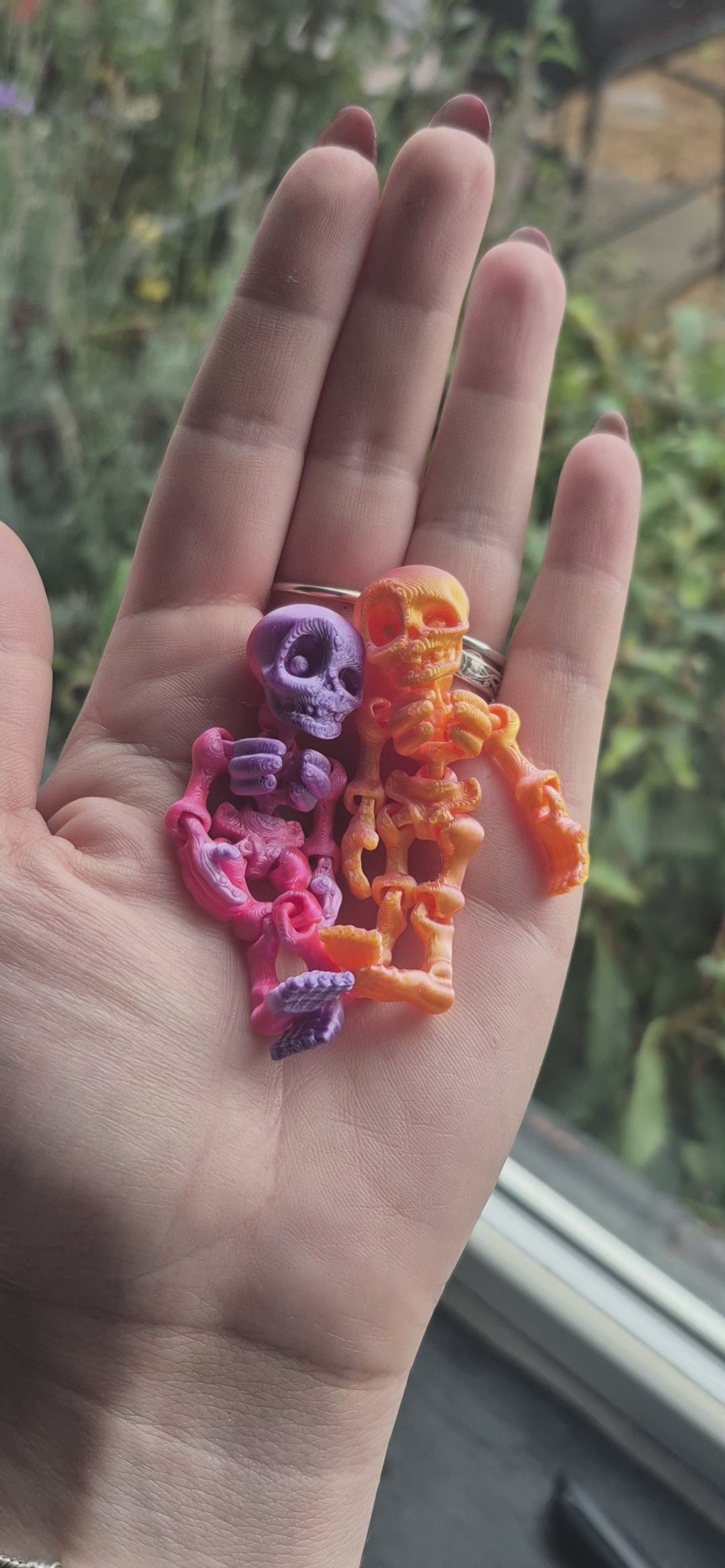 3d printes fidget skeleton. Mini size so fits in the palm of hand. Duo means pack of 2. Colours are at random.